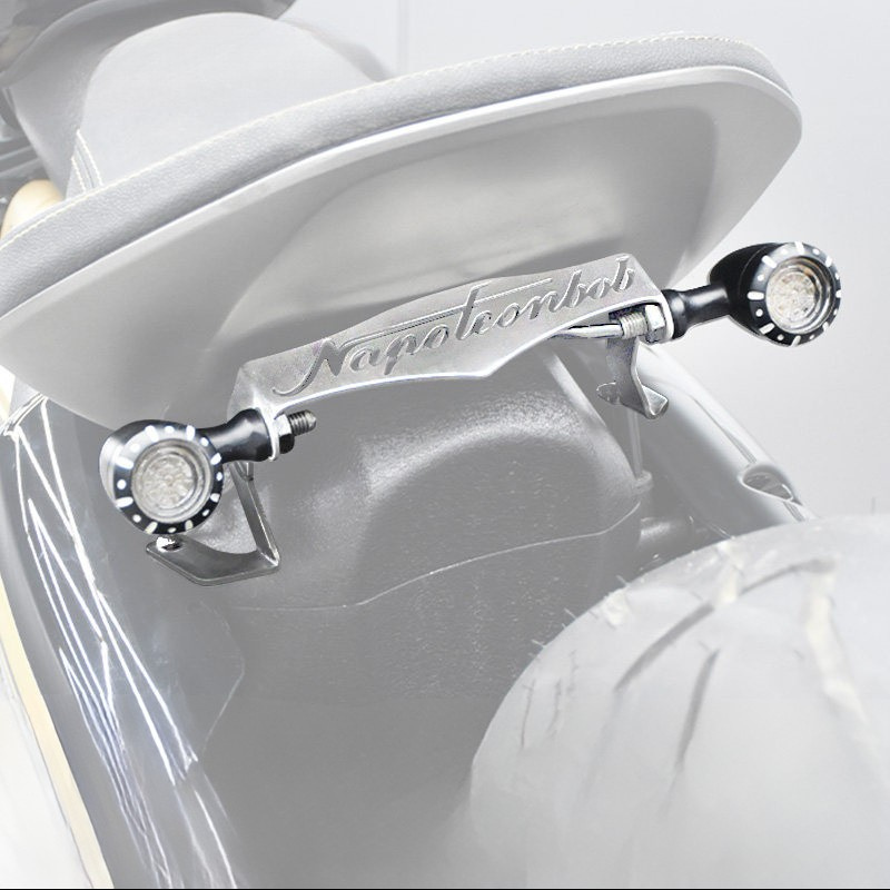 Thanks to its scrolling-effect LEDs (sequential indicators), this kit delivers modern, effective signaling. The dedicated bracket optimizes installation at the rear of the Napoleonbob 500, with neat cable routing and a spot for the license plate. Available in black or silver finish, it instantly elevates the tail tidy’s look while improving safety.