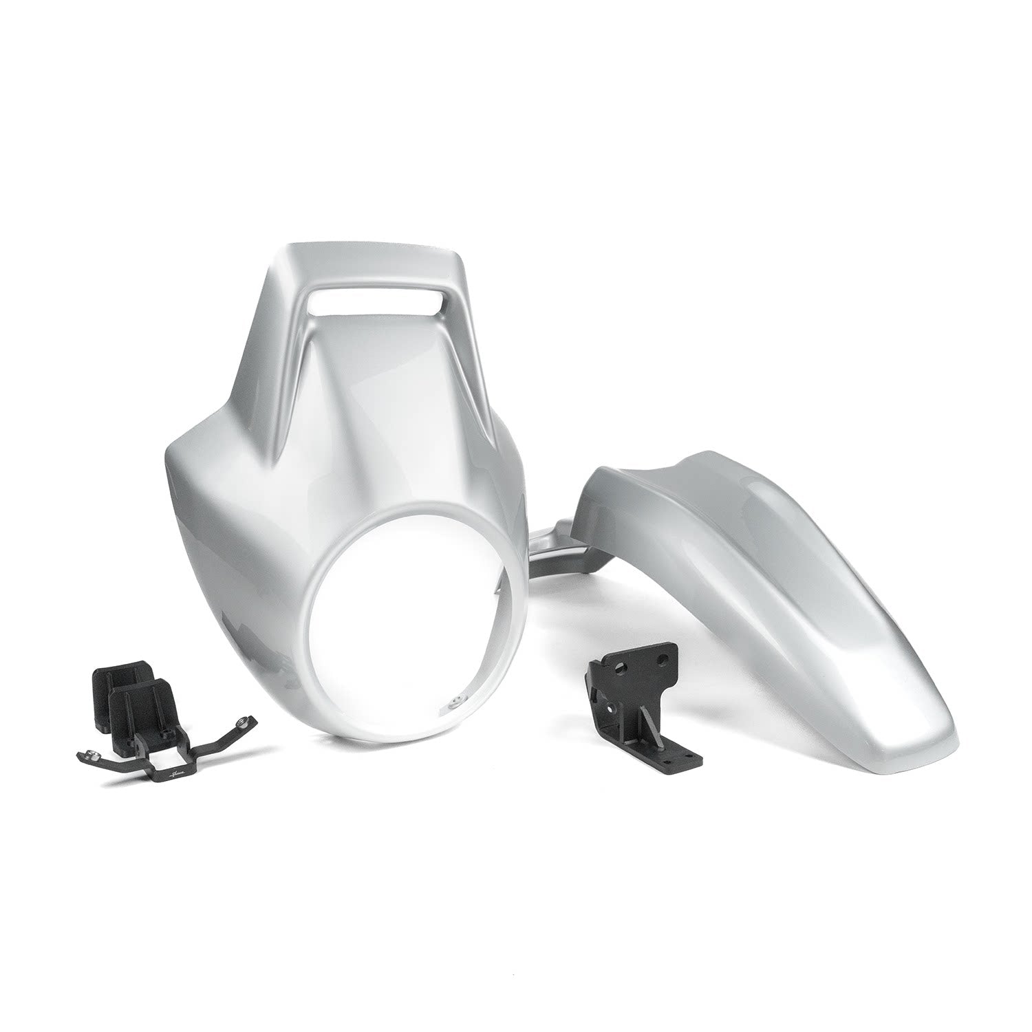 Give your bike a distinctly adventure character with this Rally Front Kit designed for the R nineT. It includes a headlight cowl (headlight cover) and a front fender beak, available as separate items or as a complete set.