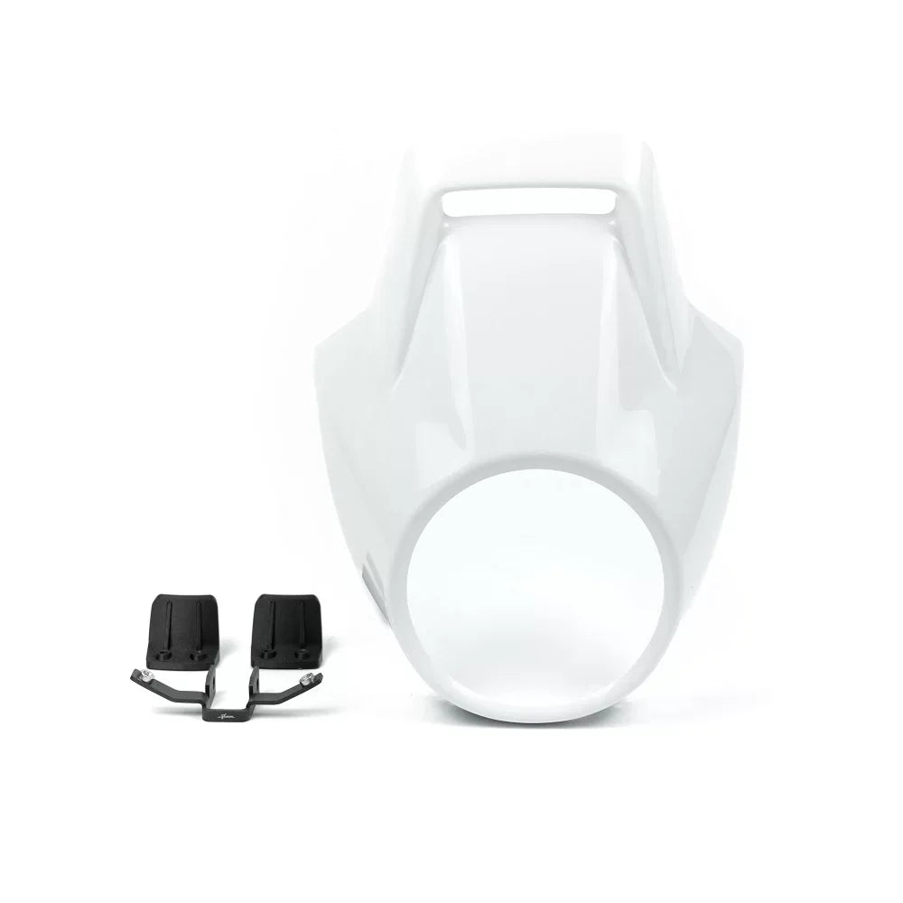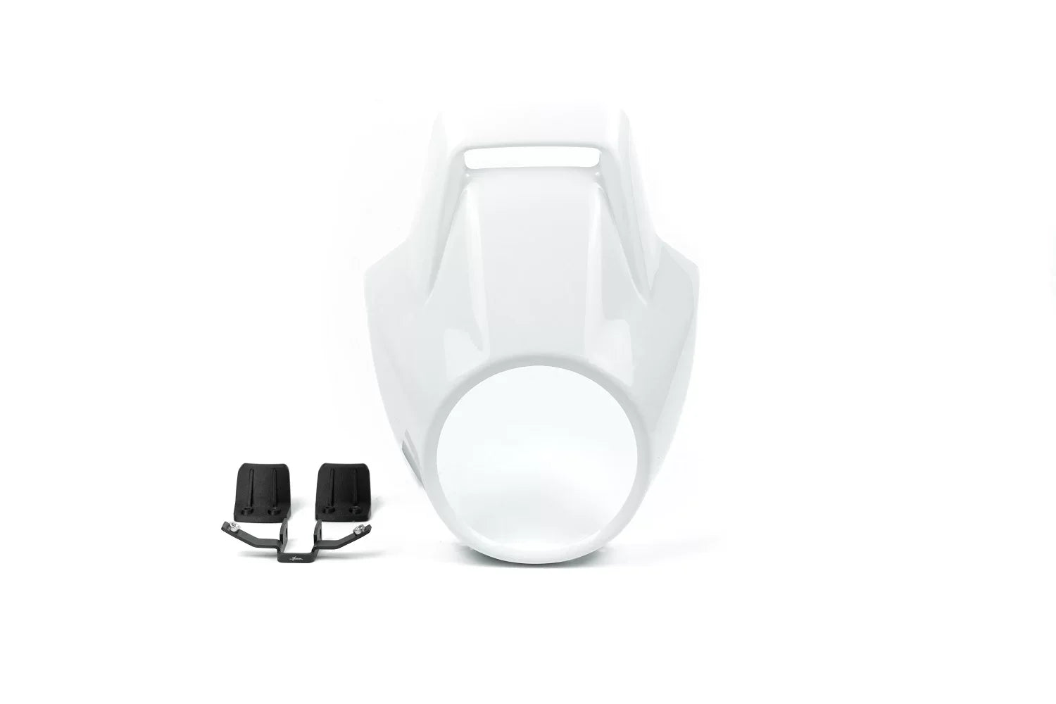 Made from tough ABS, the kit is lightweight, rigid, and engineered to fit the original mounting points. Whether you want a look inspired by the Urban GS or to improve everyday comfort, this headlight cowl and beak add a premium touch to your custom project. Several colors are offered (black, white, silver) to harmonize perfectly with your paint and existing components.